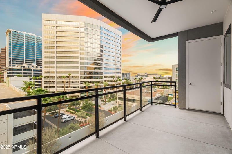 Listing details for 3131 Central Ave #6015, Phoenix, AZ 85012 : This beautifully maintained, single-owner residence at Edison Midtown features one of the community's most sought-after floor plans—a spacious 2 bedroom + den that lives like a true 3-bedroom. Positioned on the second-to-top floor, the home offers serene south-facing views overlooking the pool, with a stunning backdrop of planes gliding in and out at sunrise and sunset. The setting is truly divine. Inside, the home feels bright, modern, and effortlessly livable with clean white finishes, upgraded window treatments, ceiling fans, and custom closet built-insfeatures you won't find in new-construction units. The open layout showcases 10-ft ceilings, expansive windows, and a sleek kitchen complete with quartz countertops, stainless steel appliances, and a gas range. The versatile den makes the perfect home office or guest room, and the primary suite offers a peaceful retreat with an ensuite bath and walk-in closet. Two premium, private parking spaces located near the elevator add everyday convenience that's hard to beat. Live a true lock-and-leave lifestyle with resort-style amenities, including a heated pool, spa, a two-story state-of-the-art fitness center, resident lounge, dog wash, and secure access throughout the community. Located in the heart of Midtownsteps from the light rail, dozens of vibrant restaurants, local markets, Epic Fitness, coffee shops, and an easy connection to the airportthis is modern city living at its best. A rare opportunity to own a thoughtfully upgraded, turn-key home in one of Midtown Phoenix's most desirable urban communities.