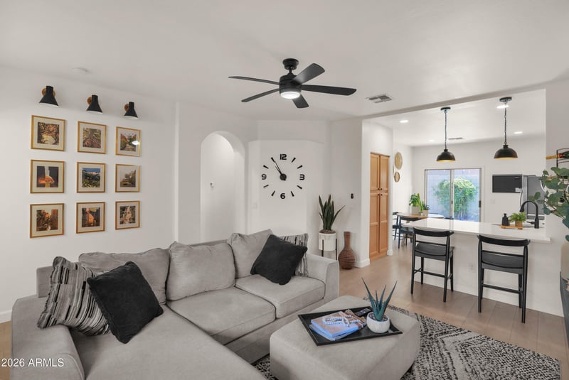 Listing details for 3139 Eugene St, Mesa, AZ 85212 : Charming, updated single-level townhome in desirable SE Mesa. Recent upgrades include a new roof, newer AC, luxury vinyl plank flooring, and an updated kitchen with quartz countertops. Both bathrooms have been remodeled. Light-filled open floorplan with spacious living and dining areas. This rare attached home offers low-maintenance living with 3 bedrooms, 2 baths, an elegant primary suite, inside laundry, and a 2-car garage. Private fenced backyard with covered patio--ideal for relaxing or entertaining. Convenient access to the 202 and 60 freeways, plus nearby schools, shopping, and dining. Community features a pool and front yard maintenance.