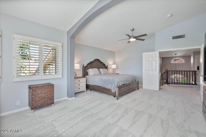 Listing details for 3141 Desert Flower Ln, Phoenix, AZ 85048 : If you've been waiting for a home where the important updates are already done then this is it. This 5 bedroom, 3.5 bath home in Ahwatukee combines quality upgrades with a backyard that feels like a private retreat. The roof has been replaced, all windows updated, the leased Tesla solar system refreshed, water heater replaced, and brand-new carpet installed. Additionally, the kitchen was remodeled with updated cabinetry, countertops, and appliances, custom stair rails, plus tile flooring throughout the main living areas. Bathrooms have also been remodeled: primary has a wi-fi connected app operated steam shower, updated showers and clean, modern finishes in the secondary baths. The floor plan offers space and flexibility. The main level includes multiple living areas, formal dining, and a bedroom with a nearby bathroom ideal for guests, workspace, or multigenerational living. Upstairs, the spacious primary suite features a private balcony, large bathroom, and multiple closets, while additional bedrooms and bathrooms provide separation and privacy. Outside the hits keep coming .The pool and newly resurfaced deck the space, with pavers, upgraded lighting, refreshed irrigation, and a private sports court creating an environment that feels intentional and elevated. The large lot gives you breathing room, privacy, and space to entertain. Close to hiking trails and outdoor recreation, this home offers the right mix of thoughtful improvements, comfortable layout, and resort-style outdoor living.