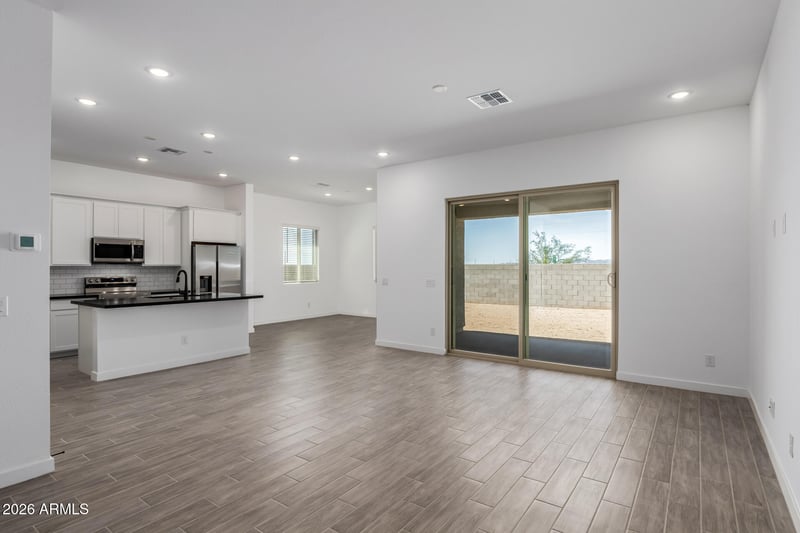 Listing details for 31512 Hayweather Ln, San Tan Valley, AZ 85143 : Move-in ready home located in San Tan Valley featuring an open floor plan and modern finishes. This home features 3 bedrooms, 3 bathrooms, a study, and a teen room. The layout includes 10' ceilings, 8' interior doors, and an oversized 3-car tandem garage with 8' garage doors. The kitchen features white cabinets, subway tile backsplash, black granite countertops, and all appliances included. Bathrooms include quartz countertops, and the main living areas feature wood-look tile flooring. This home offers a functional layout designed for everyday living.