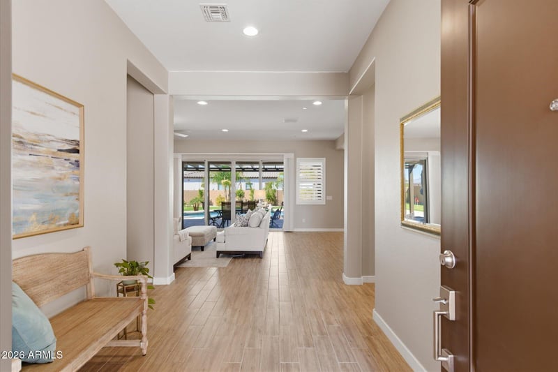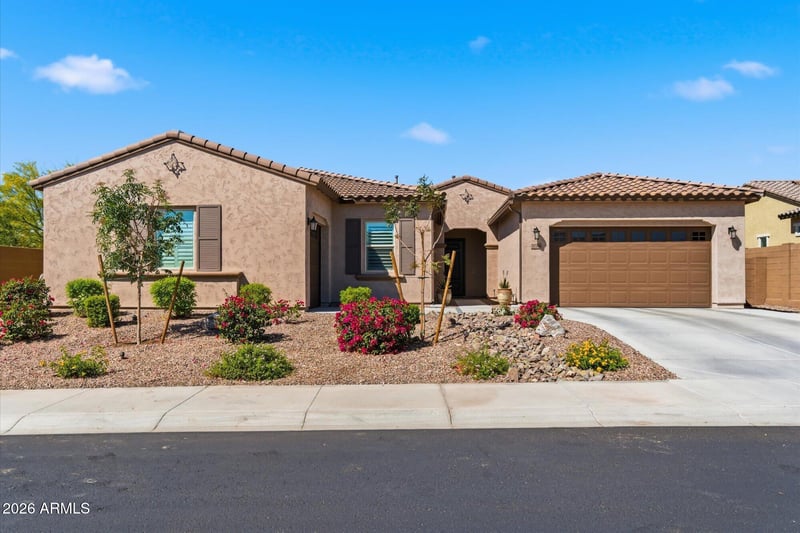 Need space for movie nights, game days, guests, hobbies, or multigenerational living? The 33x17.5 bonus room is a dream fully loaded with built-in cabinetry, a wet bar, a wine fridge, a microwave, and more. But the wow factor doesn't stop there. The Mystic Community Center elevates your lifestyle with a heated infinity pool, a media room, and a range of monthly social events, including food truck nights, concerts, dive-in movies, and holiday celebrations. The City of Peoria has even more planned Mystic Neighborhood Park, soon to be built next to the clubhouse, will feature play areas, sports courts, and pickleball, adding to the already incredible list of amenities. This home is also in a prime location just 5 minutes to the new Fry's, 15 minutes to 9 public golf courses, and close to the upcoming Five North luxury retail and dining district, as well as the American Leadership Academy K-12 charter school. Tucked away in a peaceful pocket of the community with no two-story homes nearby, this home offers the privacy you crave and the luxury lifestyle you deserve.