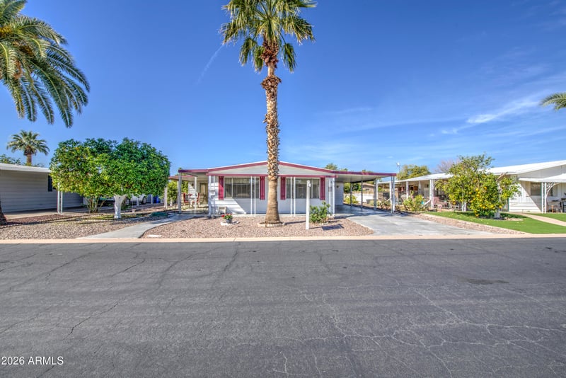Listing details for 3160 Main St #74, Mesa, AZ 85213 : This light and bright home is on OWNED land. No lot rent! The home has been extensively renovated and updated with laminate floors throughout. The kitchen features new IKEA white shaker soft close cabinets, nice white appliances, laminate counters and a pantry. The bathrooms are redone as well, with new vanity units that feature porcelain sink/sink tops and two large drawers for storage as well as chair height elongated toilets. While the main bathroom has a walk in shower, the master features a recoated tub shower combo. This property has a fully enclosed Arizona room and a covered patio. The furniture you see stays with the home. As well as kitchen equipment. Owners have a list on the counter of what few things do not convey. Guys, check out the huge shop 25' x 11'5''. You can create