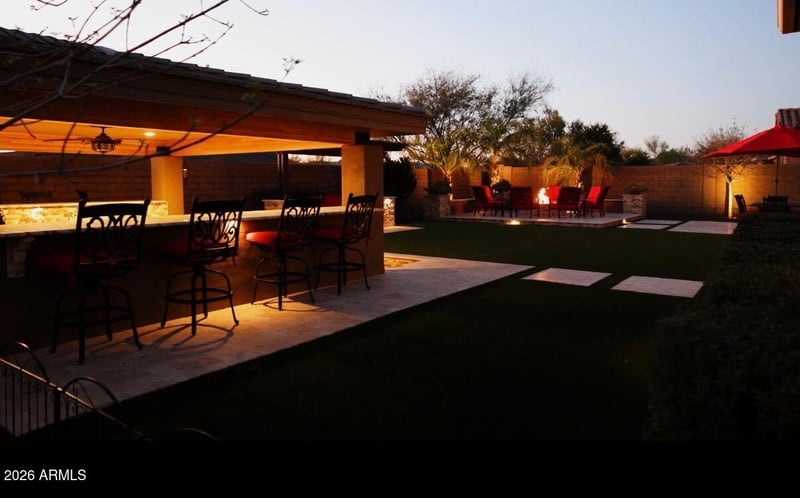 Listing details for 31626 129th Dr, Peoria, AZ 85383 : 2 Newly installed Trane HVAC units!!Welcome to luxury living in the prestigious guard-gated Blackstone community! This exquisite single-level,mountain/sunset views offers 3 bedrooms,3.5 bathrooms and office,all within an open and bright floorplan. The gourmet kitchen is a chef's dream, featuring all new GE Monogram appliances,including a built-in fridge,oversized kitchen island with cabinets on both sides.extended cabinetry in the dining area and huge walk-in pantry.Highlights includes seller attention to detail with all new light fixtures and oil rub bronze door handles/hinges, plantation shutters and new water heater. Step outside to your private oasis, where the backyard has been meticulously renovated.Enjoy the travertine pavers,gas fire pit,large gazebo,and outdoor kitchen