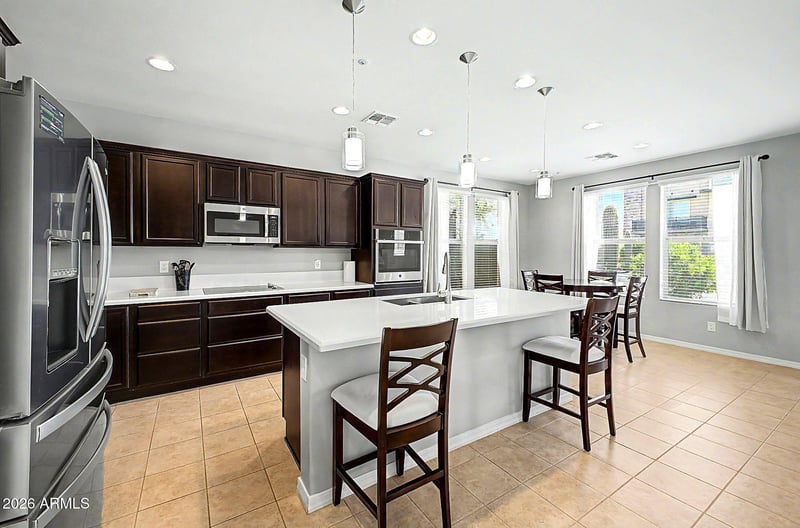 Listing details for 31730 24th Dr, Phoenix, AZ 85085 : Welcome home to this beautifully upgraded two-story residence in sought-after Sonoran Foothills--the only unit currently available with a private balcony, offering a rare chance to enjoy morning coffee and mountain views. Inside, you'll find tile flooring, modern lighting, neutral tones, and a fire sprinkler system for added peace of mind. The open-concept kitchen features rich espresso cabinetry, quartz countertops, stainless steel appliances, and a large island with breakfast bar. Upstairs, the primary suite offers direct balcony access, dual sinks, and a walk-in closet, while additional bedrooms also include walk-in closets. A versatile loft adds flexible living space. Some photos have been virtually staged for illustrative purposes. back, you'll have a covered patio, a nice seating space with pavers and grass, perfect for weekend grills. Don't miss out on this gem!