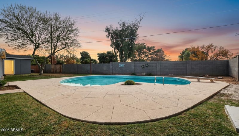 Listing details for 3223 Belmont Ave, Phoenix, AZ 85051 : You are going to fall in love with this hidden gem in central phoenix. Gorgeously remodeled with pride of ownership, this home features a PRIME OVER-SIZED 1/4+ acre lot with 2 RV gates, NEW shed with electricity & plumbing, large diving pool & backs to grassy Mariposa park, large trees & private access to park. With the best curb appeal in the neighborhood, you will enjoy all the comforts of home with cozy fireplace, NEW granite counter tops with backsplash, NEW white kitchen cabinets with crown molding, NEW light fixtures & ceiling fans, NEW appliances, NEW WOOD garage DOORS & GATES, NEW WOOD SHUTTERS through-out & much more! Spacious floor plan with large bedrooms & custom walk-in closet, laundry room, lots of kitchen cabinets, eat-in kitchen with large custom Island. NO HOA!