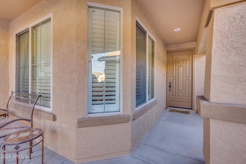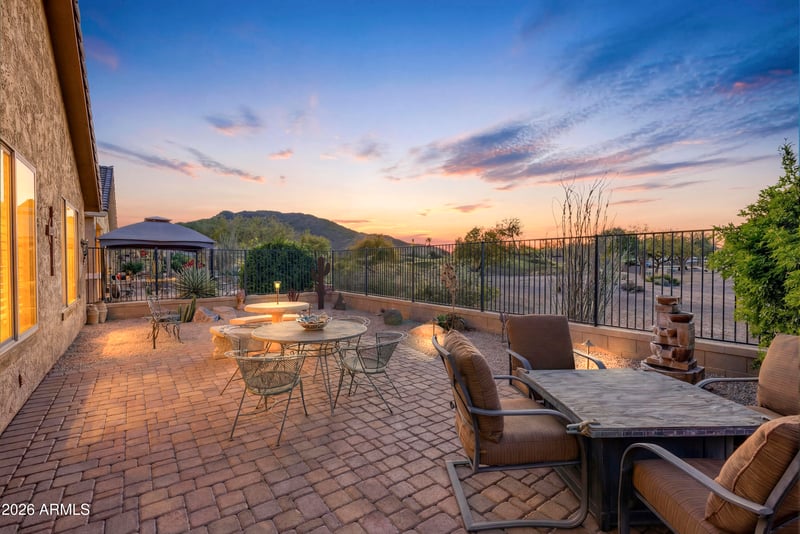 Listing details for 32258 Echo Canyon Rd, San Tan Valley, AZ 85143 : Welcome home to this beautifully maintained Sagebrush model, ideally positioned on a premium golf course, mountain view, and common-area lot. This exceptional home is being offered fully furnished, creating a truly turnkey opportunity for the next owner. The open floor plan includes 2 bedrooms, 2 baths, plus a den and features plantation shutters throughout. The kitchen features Corian countertops, staggered cabinetry, and a breakfast nook. The primary suite has a spacious walk in closet, double sinks, and a separate tub and shower. Step outside to a west-facing backyard overlooking the 5th green of Johnson Ranch Golf Club, where breathtaking Arizona sunsets are part of everyday life. The expanded paver patio is perfect for relaxing or entertaining, complete with a built-in gas BBQ, tranquil fountain, and gas firepit, an ideal setting for enjoying evenings under the desert sky. Located just a short walk from the Solera community center, where residents can enjoy resort-style amenities such as golf, pool, spa, fitness center, billiards, pickleball and many social activities, living a true active 55+ lifestyle. More than just a home, this is a rare opportunity to enjoy a beautifully maintained, fully furnished retreat in the highly desirable Solera at Johnson Ranch community.