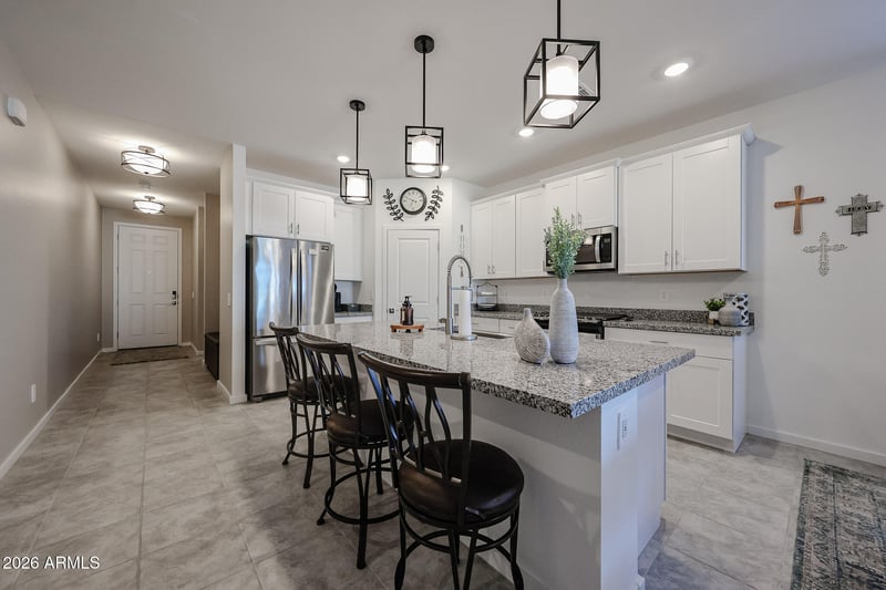 Listing details for 32265 Union St, San Tan Valley, AZ 85143 : Nestled in growing San Tan Valley community, this modern 4bedroom, 3bath home features an open-concept layout that maximizes natural light and creates an inviting flow from the great room to the kitchen and dining areas. The kitchen is designed as the hub of the home, with a large central island, ample cabinetry, and generous counter space that is ideal for meal prep and casual gatherings. Adjacent living and dining spaces make entertaining easy,