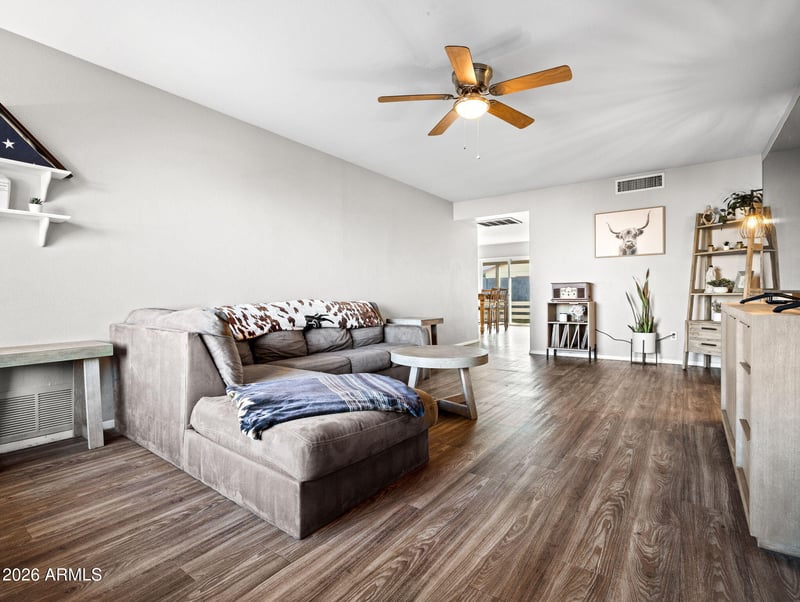 Listing details for 3233 Mandalay Ln, Phoenix, AZ 85053 : Priced to Sell! No HOA, Beautiful 3 Bedroom, 2 Bath, Single Story Home, Open Kitchen with White Shaker Cabinets, Quartz Countertops, Recessed Lighting, Stainless Steel Appliances, Eat-In Kitchen, Spacious Family Room, Vinyl Wood Plank Flooring, Carpet in Bedrooms, Spacious Master Bedroom, Walk In Closet, 2 Car Garage w/Extra Worksop space, RV Gate access from Backyard, and Large Backyard. Don't miss out on this home!