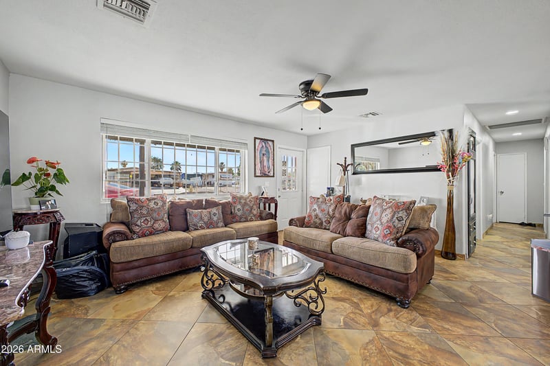 Listing details for 324 88th St, Mesa, AZ 85207 : Spacious 4-bedroom, 2-bathroom home situated on a large lot in Mesa with no HOA. Tenants in place! This property offers excellent flexibility with a private swimming pool, a detached shop perfect for storage, a workshop, or hobbies, and an RV gate with ample space to park an RV, trailers, or off-road vehicles. The open-concept floor plan connects the kitchen, dining, and living areas, creating a comfortable and functional layout ideal for everyday living and entertaining. The bedrooms are generously sized, and the expansive yard provides plenty of room for outdoor activities, additional parking, or future customization.