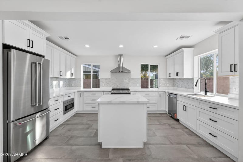 Listing details for 3241 27th Pl, Phoenix, AZ 85016 : Turn-key, beautifully remodeled 4-bedroom w/ garage - Home is essentially brand new. Lots of parking available! New, upgraded cabinets throughout kitchen & bathrooms w/ amazing upgraded quartz countertops. New stunning wood-like plank tile throughout home (no carpet). New roof, new HVAC, new tankless gas water heater, new windows, & new doors. New SS appliances convey to buyer. Beautiful grass in front w/ new sprinkler system & artificial turf in back. Gorgeous fireplace with outlet available for tv mount. Large primary bedroom with large bathroom, walk-in shower, and dual closets. ALL new fixtures too - ceiling fans w/ remotes, sinks, faucets, light fixtures, mirrors, you name it! Freshly painted interior & exterior.