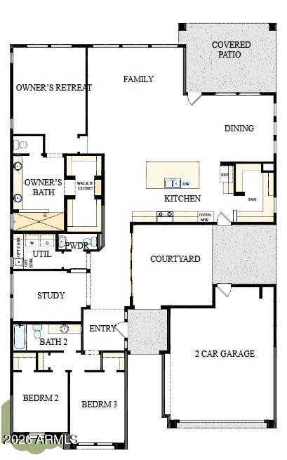 Listing details for 32435 135th Dr, Peoria, AZ 85383 : BRAND NEW single level plan with 3 beds, 2.5 baths, study, gorgeous interior courtyard and 2 car garage; both secondary beds have large walk-in closets; upper and lower cabs with sink in utility room; gorgeous gourmet kitchen with views to the extended covered patio; dark cabinets, a custom tiled backsplash and quartz tops; huge pantry and GE Cafe stainless appliances with gas cooktop; 2-tone paint, upgraded tile, carpet and pad throughout; owner's bath with dual sinks, quartz countertops and incredible tiled walk-in shower, large walk-in closet with built-in seat and mirror; 12' sliding glass door access to the beautiful interior courtyard; 2x6 construction and extensive new home warranty.