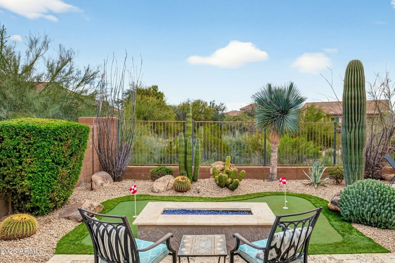 Listing details for 32523 56th Pl, Cave Creek, AZ 85331 : Located in a sought after gated Cave Creek community, this vibrant home offers 4 bedrooms, 2.5 baths, and a private split primary suite. Bright, open living spaces feature large windows overlooking a pristine backyard with all the amenities for your enjoyment—one of the best lots in the neighborhood. The spacious kitchen boasts a big island and sunny dining nook. A flexible living/dining area adds room for an office, den, or game space. Just enhanced with new carpet, a fresh coat of paint, and new AC makes this home move in ready. A tandem 3 car garage provides for an additional vehicle, or extra storage and EV Charging. Close to shopping, dining, golf, and hiking, this home is perfect for full time living or a winter escape. Do not miss your chance to tour this exceptional value today.