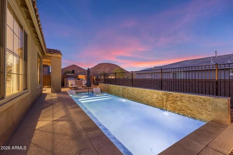 Listing details for 32567 133rd Ave, Peoria, AZ 85383 : 4BR PLUS office in the popular Cantania floor plan with over $140,000 in upgrades. This open concept layout is built for modern living and effortless entertaining. The chef's kitchen features white cabinetry, quartz counters, oversized island, tile backsplash, 36 inch gas cooktop, built in oven and microwave, and upgraded appliances. The owner's suite offers a stunning oversized glass walk in shower. Step outside to a heated pool with Baja shelf, covered patio, and built in BBQ. Enjoy Sovita Club amenities, trails, shopping, dining, and Lake Pleasant nearby.