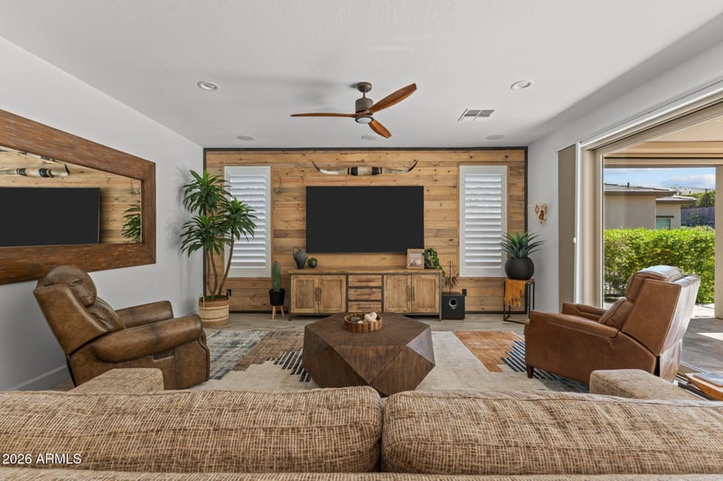Listing details for 3267 Buckaroo Ct, Wickenburg, AZ 85390 : Experience effortless desert luxury in the highly sought-after Wickenburg Ranch community. This beautifully maintained home features fresh interior paint and a bright, open-concept design ideal for both everyday living and entertaining. The well-appointed kitchen flows seamlessly into the main living space, creating an inviting, upscale atmosphere. A versatile den/office offers flexibility as a third bedroom--perfect for hosting guests. Step outside to your private backyard retreat with a covered patio, built-in fire pit for cool Arizona evenings, and newly installed turf for easy, low-maintenance, lock-and-leave living. Enjoy resort-style amenities including golf, dining, fitness, pickleball, and a vibrant social lifestyle.