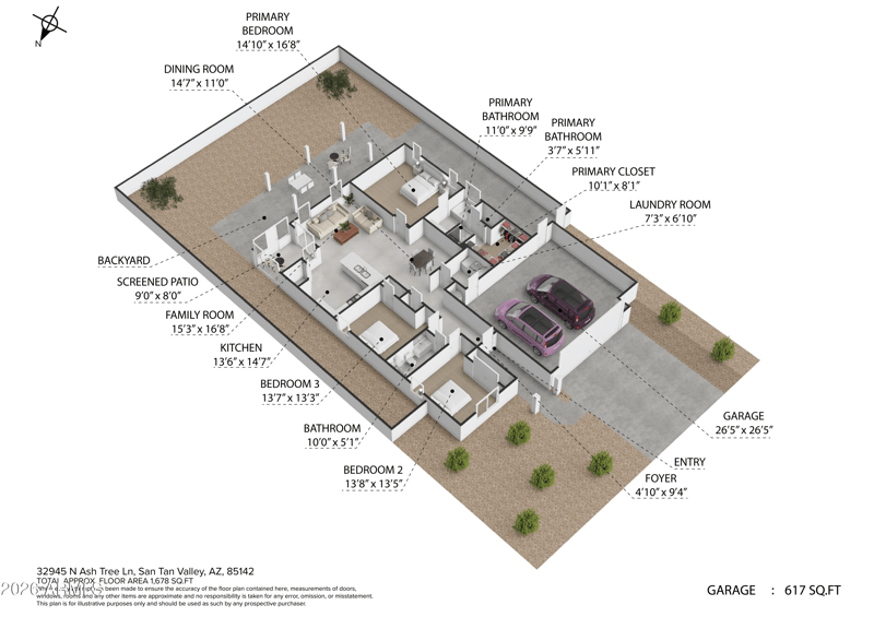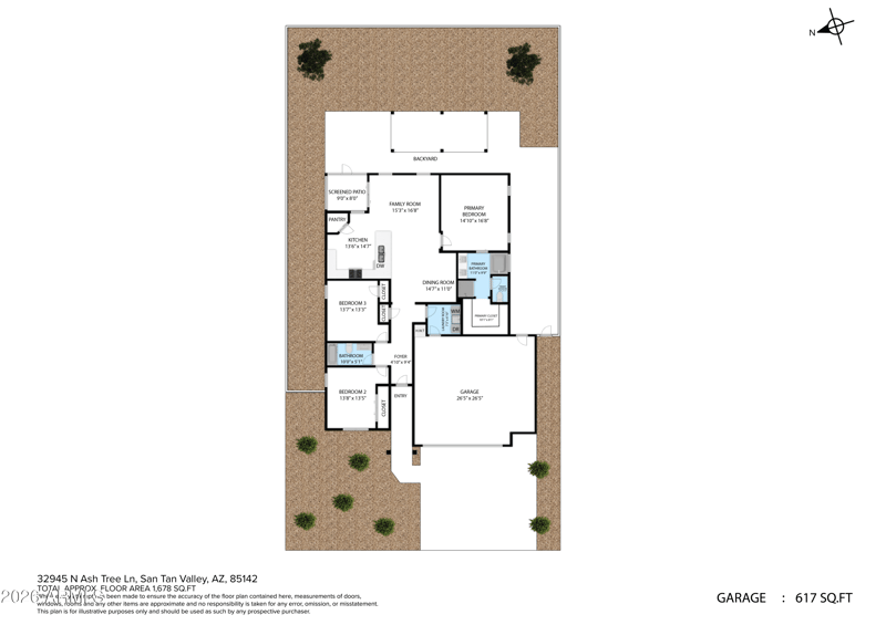 Listing details for 32945 Ash Tree Ln, San Tan Valley, AZ 85144 : No front or rear neighbors, an extended 2-car garage, and a widened driveway offering comfortable parking for up to three vehicles--features that are rarely available together in this price point.