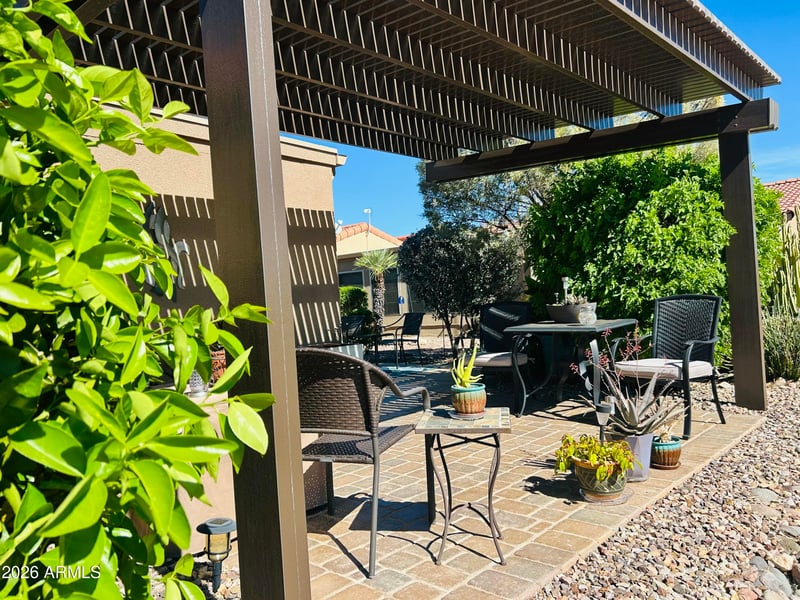 Listing details for 3301 Goldfield Rd #3030, Apache Junction, AZ 85119 : View this meticulously maintained/semi-furnished home front to back, inside & out. Stylish upgrades throughout this inviting & ready to entertain sought after floor plan. If it's space you need, this 1800 sq. home has it. With plantation shutters, beautiful natural stone tile & wood flooring are a few of the highlights throughout. The kitchen offers a breakfast nook & eat-in kitchen & formal dining area. Time to read a book & ponder thoughts in the cozy den. Finished window enclosed AZ Rm has (3 sep/rms) perfect for a hobby & for hosting the best gatherings. Then stroll outside to the most tranquil private back patio sitting area w/a newer covered pergola. This oasis is just waiting for you to take in the warmth of the sun & chill out with the desert breeze. Come tour this beautiful home and community here in the amazing Active age qualified guard gated community of Dolce Vita at Superstition Mountain. Check out the 33,000 sq. ft. professionally maintained clubhouse with the best of amenities. Offering a modern fitness gym, media/book den, billiards hall, craft & card rms. a huge amazing event\dance hall. Relax & enjoy coffee/tea in the inviting entrance lobby. Or take in all the outdoor activities w/ the newly renovated ocean entrance heated pool, 2 spas w/outdoor clubhouse pool showers/bathrm. Shuffleboards, bocce ball, 9 hole golf putting green, along w/newly updated & lighted pickle ball courts. 3 pet parks, & an RV/trailer/boat storage lot for free. Located close to everything. Airports, golf courses, mountains, lakes and more.