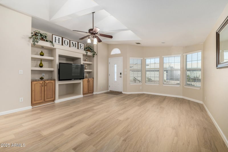 Listing details for 3301 Goldfield Rd #4018, Apache Junction, AZ 85119 : Stunning mountain views greet you from this beautifully upgraded 2 bed + office/den, 2 bath, 4 car garage home in the prestigious 55+ luxury resort community of Dolce Vita. Inside, the spacious open layout features vaulted ceilings, luxury vinyl plank flooring & a formal dining room. The kitchen offers both a breakfast bar & an eat-in area, along w/ample cabinetry & counter space—perfect for everyday living & entertaining. Both bedrooms are generously sized, & the dedicated office/den includes built-in cabinets & a desk, making it an ideal craft room, sewing room, or workspace. The oversized primary bathroom features a soaking tub, separate shower, dual sinks, a private toilet room, & a walk-in closet. A highlight of the home is the large screened-in Arizona room with tiled flooring, showcasing unobstructed, premium-lot views of the Superstition Mountainsno neighbors behind you, just stunning scenery. Additional upgrades include a new roof (2022), appliances and water softener (approx. 5 years old), and a rare 4-car garage with epoxy flooring and built-in cabinetryoffering exceptional storage and parking.