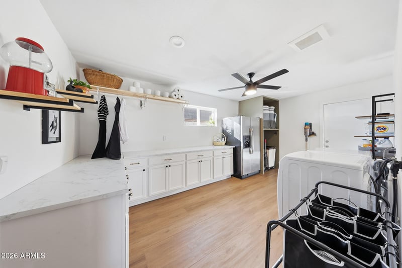 Listing details for 3317 Bloomfield Rd, Phoenix, AZ 85032 : Welcome to a home that truly delivers on space, flexibility, and thoughtful updates — all with NO HOA. Located at 3317 E Bloomfield Rd in Phoenix, this 5-bedroom, 3-bathroom residence offers a layout designed to adapt to real life, whether you're growing, hosting, or creating a multi-generational setup. Step inside to an open and inviting floorplan that flows effortlessly from room to room. The main living areas feel bright and connected, making everyday living and entertaining feel easy and natural. The kitchen and flooring were tastefully updated in 2021, bringing a fresh, modern feel while remaining warm and functional. One of the standout features of this home is the versatile room addition, currently being used as a laundry room. This space offers endless potential - think home office, playroom, craft space, or expanded storage. It's a flexible bonus that allows the home to grow and change with your needs. The primary living areas open beautifully to the backyard through large sliding doors, creating seamless indoor-outdoor living. Outside, you'll find a private pool that was resurfaced in 2022, offering a refreshing retreat for Arizona summers and a relaxing backdrop for weekends at home. The yard is designed for both enjoyment and privacy, making it a true extension of the living space. This home also features a dedicated mother-in-law suite with its own exterior access, providing privacy and convenience for guests, extended family, or even rental potential. It's a thoughtful addition that adds significant versatility to the home's layout. With five bedrooms, multiple living options, and meaningful upgrades already completed, this home offers comfort, functionality, and freedom. Whether you're looking for room to spread out, a flexible floorplan, or a property that supports multiple lifestyles under one roof, this Phoenix home is ready to meet you there. Come see how easily this space can work for you!