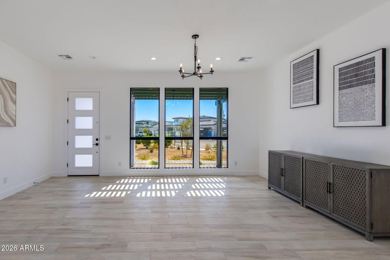 Listing details for 3330 Desert Dawn Dr, Phoenix, AZ 85083 : The last remaining home available in Desert Dawn Estates, a new home community with soft contemporary design and secluded in a quiet cul-de-sac. 100% new construction and optimally designed for modern living this home has it all. Upon entering you are greeted with soaring ceilings and a great room that is flooded with natural light. Each generously sized bedroom boasts an en suite bath and walk-in closet. The open concept kitchen is well appointed with quartz counters, white shaker cabinetry and LG Studio appliances. A large island sits at the center which overlooks the great room, ideal for gathering and entertaining. The primary suite is a true retreat with a spa-like bath complete with soaking tub, quartz counters, dual vanities and an oversized shower. The massive primary walk-in closet is situated with access to the laundry. Boasting 5 bedrooms and 4 baths plus a 3-car garage there is ample room for all and for storage. Enjoy mountain views, easy freeway access, close proximity to Lake Pleasant, and numerous options for nearby shopping and dining. There is plenty of space for a pool or to add a casita. All this with the peace of mind of a quality new built home.