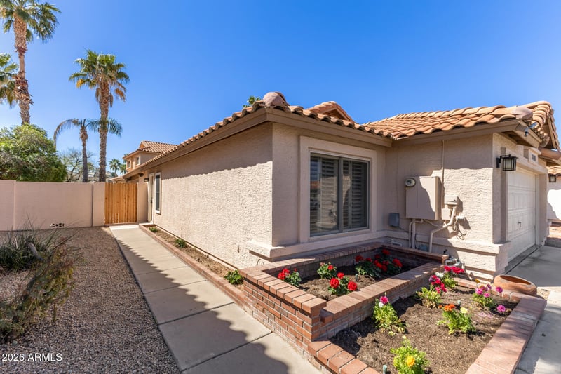 Listing details for 3335 Golden Ln, Chandler, AZ 85226 : Welcome Home! This stunning former model blends Southwest charm in an unbeatable location-15 minutes from Sky Harbor Airport, ASU, and downtown Gilbert, and 20 minutes from Old Town Scottsdale. Beautiful Saltillo tile floors and a Spanish-style tile roof create timeless appeal, with an upgraded roofing system featuring asphalt shingles under the tile. The kitchen offers granite countertops, solid wood cabinetry, and a new stainless refrigerator. Plantation shutters and new Andersen windows enhance style and efficiency. Recent updates include new carpet, fresh baseboards, a solar water heater, plus a new washer and dryer. Enjoy relaxing evenings by the outdoor wood-burning fireplace. This home has been lovingly maintained and is truly move in ready for its next lucky owner.