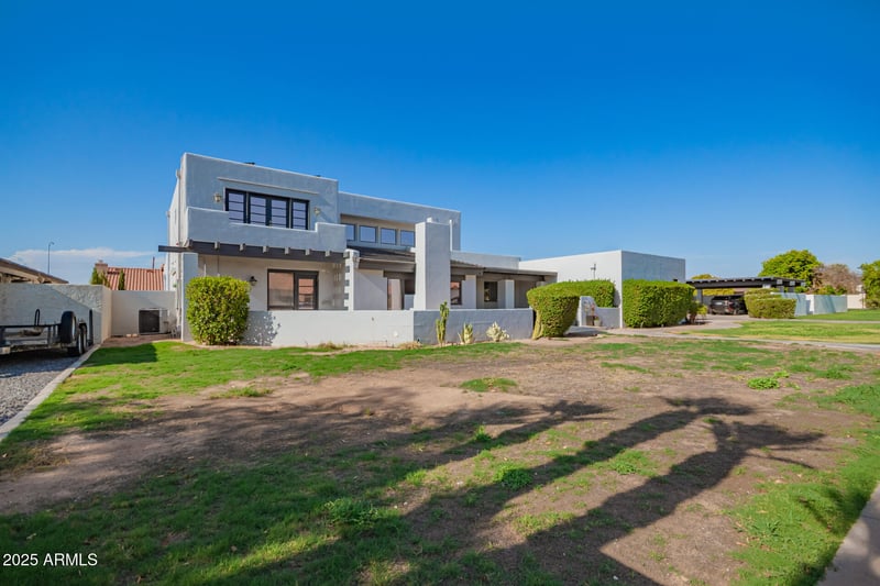 Listing details for 3342 Fox St, Mesa, AZ 85213 : Fall in love with a Santa Barbara-style masterpiece nestled in the desirable neighborhood of The Groves in Mesa, Arizona. This exquisite one-of-a-kind custom home features 4 bedrooms, 3.5 bathrooms on over an acre of property. This is a rare opportunity to own multiple parcels with the future opportunity and potential to add on a spacious guest house/mother-in-law suite, separate work garage. Perhaps an investment opportunity to build an entire other single family residence on the addition parcel. There is so much space that the opportunities are truly endless! Recently remodeled in 2024, the thoughtfully curated kitchen and luxurious master bathroom showcase high-end finishes and breathtaking design elements. The primary bedroom includes a private office/sitting area with a quaint fireplace and an outside entrance for added privacy. Each bedroom comes complete with a private patio or balcony. Enjoy the brand new Luxury Vinyl Plant floors throughout that add warmth and elegance to every room. The backyard oasis features a resort style pool with swim up bar, spa, sauna and a fantastic sports court.
