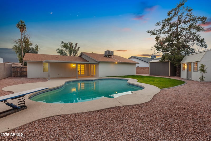 Listing details for 3350 Florian Ave, Mesa, AZ 85204 : STUNNING REMODEL ALERT! Completely TURN-KEY, MOVE-IN-READY 3-bed + 2 bath home in the heart of Mesa w/ NO HOA! 2021 AC Unit! Sparkling pool w/ natural grass and brand new irrigation system! Detached finished office w/ power and AC! RV GATE! Walk inside to your open living room, filled with natural light & a gorgeous chef's kitchen, that boasts new custom shaker cabinets, white quartz countertops w/ waterfall edge, new stainless-steel appliances, w/ luxury flooring & baseboards, as well as new carpet. Bathrooms are BEAUTIFULLY DONE w/ Bedrosians Tile. Both bathrooms have a double sink and main bathroom has a dual shower head as well! Newer dual-pane windows! Fresh interior and exterior paint. This home has every designer touch you can imagine! Location is PERFECT, right off US-60!!