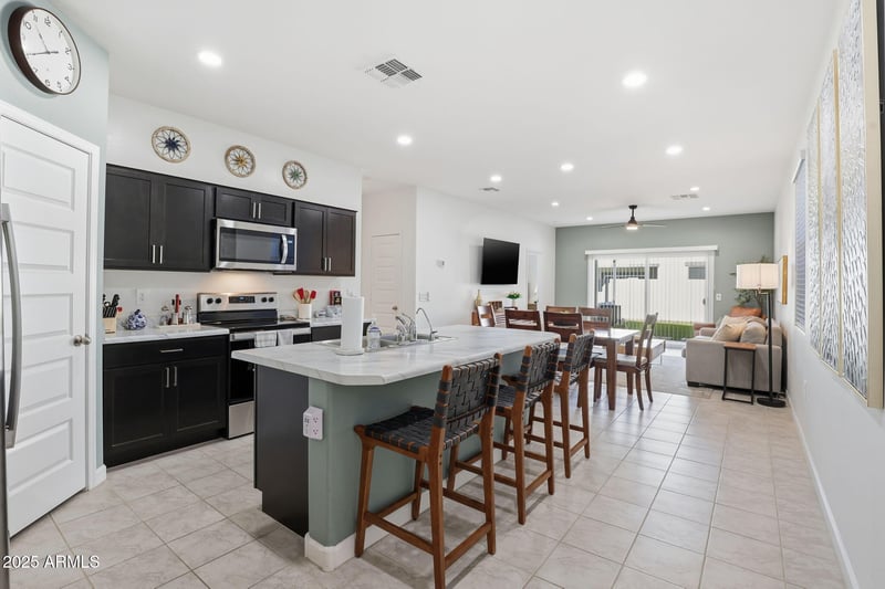 Listing details for 3350 Spaulding Ave, Apache Junction, AZ 85120 : Better than new home in Radiance offers modern living where Mesa meets AJ with beautiful views of the Superstition Mountain. Gently lived in and loaded with upgrades: premium Sherwin Williams paint, custom paneling, accent walls, epoxy garage, and a HEPA filtered HVAC system. Completed front and back yard with turf, pavers, and pergola for shade. Did I mention the washer, dryer, fridge, stove, dishwasher and microwave are all included! Enjoy 9 ft ceilings, tile in all main areas, and an energy efficient 3 bed/2 bath layout near the 24, 60 & 202.
