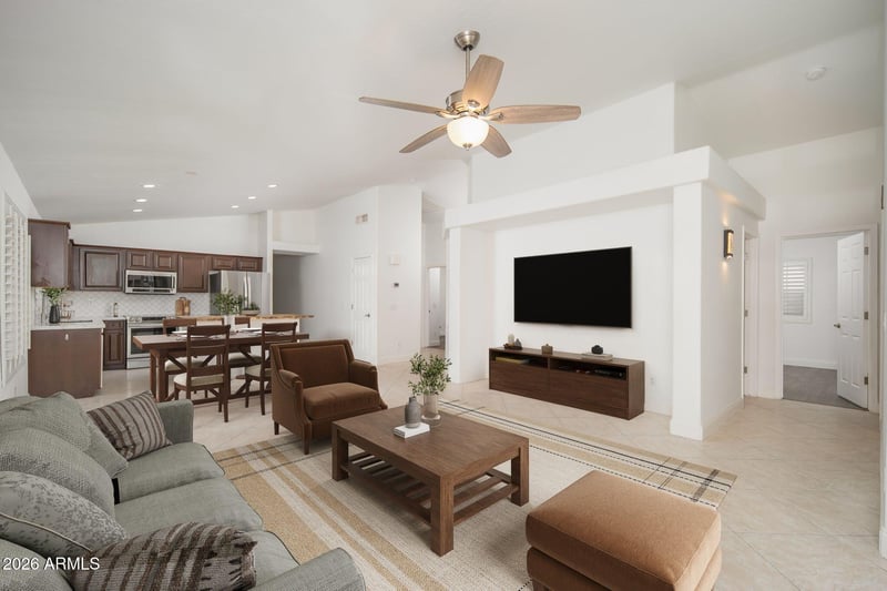 Listing details for 3352 Wildhorse Dr, Gilbert, AZ 85297 : The moment you walk in, you'll be impressed by the stunning upgrades throughout. Soaring vaulted ceilings, 5 bedrooms plus an office, Open kitchen with a large island that flows seamlessly into the great room--perfect for everyday living and entertaining. Step outside to your private backyard oasis with a sparkling pool, travertine deck, and beautiful waterfall feature. The luxurious primary bath is beautifully updated and designed for comfort. This turnkey home is move-in ready and truly checks all the boxes.