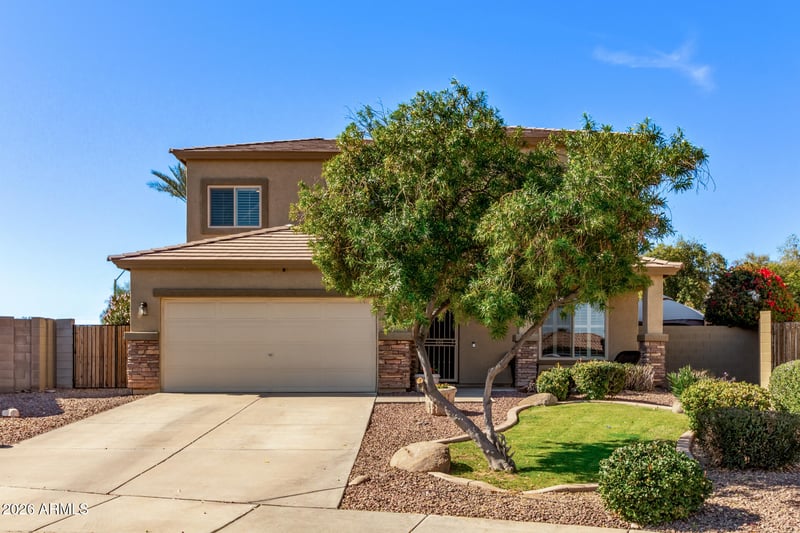 Listing details for 33656 Windmill Rn, San Tan Valley, AZ 85144 : Remarkable two-story home with POOL in Skyline Ranch is sure to impress! Situated on a large pie-shaped lot, this beauty offers 3 beds, 2 baths + powder room, and a 2-car garage. Great curb appeal highlighted by stone accent details, well-manicured landscape, and a cozy front porch. The inviting interior showcases plantation shutters, abundant natural light, a designer palette, neutral & wood-look tile flooring downstairs, and soft carpet upstairs. Discover the formal living room, along with a welcoming family/dining room! The impeccable kitchen boasts SS appliances w/cooktop elec, quartz counters, subway tile backsplash, recessed & pendant lights, espresso shaker cabinetry, and a center island. All bedrooms await upstairs! Also including a versatile loft that can be an office or TV area. The sizable main bedroom is a true retreat, providing a walk-in closet with custom built-ins and an ensuite with dual sinks & a separate tub/shower. Laundry room with overhead cabinets. But the real highlight is the spacious backyard oasis! Designed for ultimate relaxation and entertainment with a covered patio, grassy areas, a built-in BBQ grill, and a sparkling pool w/stone waterfall. What's not to like? See it! Love it! Live it!
