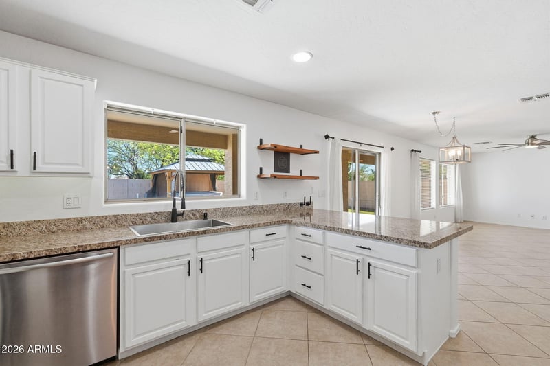 Listing details for 3370 Flamingo Ct, Gilbert, AZ 85297 : Stunning Gilbert home with 3 bedrooms, den, 2 baths, loaded with upgrades! Engineered wood and tile flooring throughout provide a stylish, allergy-free living environment. Soaring 18-foot ceilings in formal living and dining add elegance and light. The bright, open kitchen flows to a spacious living area, while the master suite offers a private retreat. Step outside to a backyard oasis featuring a new $18K hot tub (2024) and covered patio--perfect for entertaining. Fresh paint and a widened driveway enhance curb appeal. Move-in ready and ideally located near top schools, shopping, and dining!