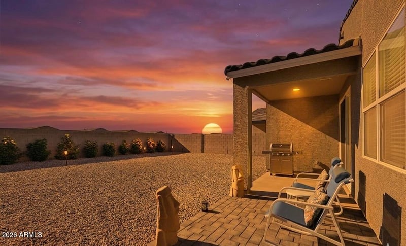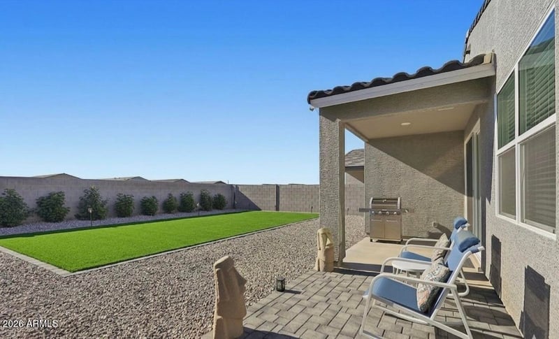 Exterior upgrades include professional landscaping, extended patio, widened driveway, and epoxy-coated garage flooring. The property offers added privacy with no direct rear neighbors. Washer, dryer, refrigerator, and window blinds are included. Select furnishings may be available.