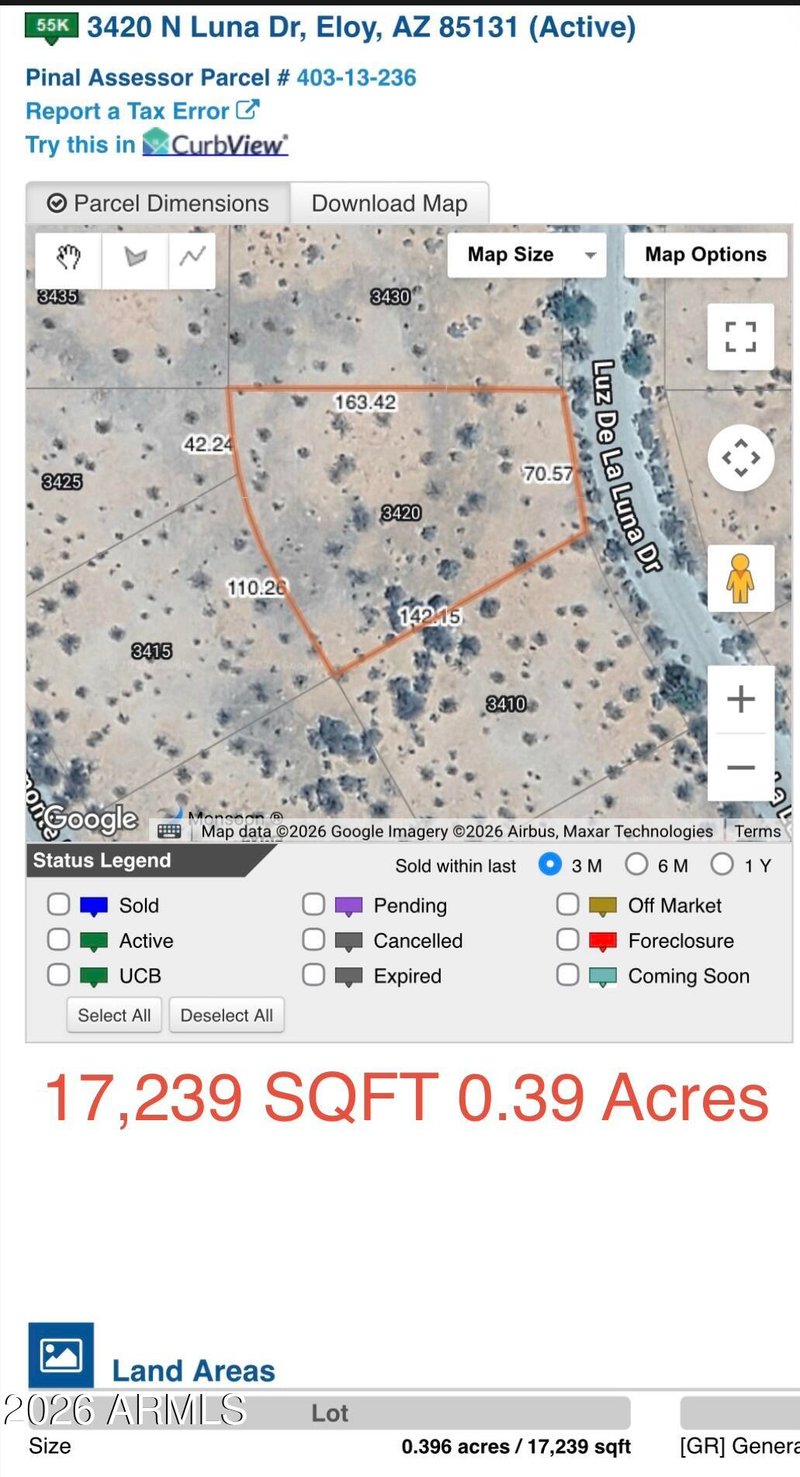 Listing details for 3420 Luna Dr 10 LOTS, Eloy, AZ 85131 : BULK SALE includes 10 OVERSIZED residential lots , NO HOA , LOW TAXES in fast growing Eloy! Amazing investment opportunity!