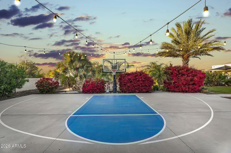 The spacious great room floor plan is designed to capture the incredible views & provide seamless everyday living. The gourmet kitchen features top-of-the-line stainless steel appliances, marble countertops, custom backsplash, & a walk-in pantry. The private primary suite includes 2 large walk-in closets, separate vanities, designer mirros, soaking tub, separate shower & private access to the covered patio. A front office offers inspiring mountain views. Step outside to an entertainer's dream backyard complete with a private pool, covered patio, exterior fireplace, ramada, sport court, lush landscaping, and a viewing deck perfectly positioned to enjoy mountain views, city lights, and Arizona's beautiful starry skies. A detached 400 sq ft office/guest space adds flexibility for guests, a private office, gym, or hobby room. Additional features include a large laundry room and oversized 3-car garage. Located just minutes from Queen Creek Marketplace, shopping, dining, and highly rated schools including Casteel, American Leadership Academy, and Benjamin Franklin Charter Schools. A rare opportunity to own a private custom-lot retreat in one of Queen Creek's most desirable gated communities.