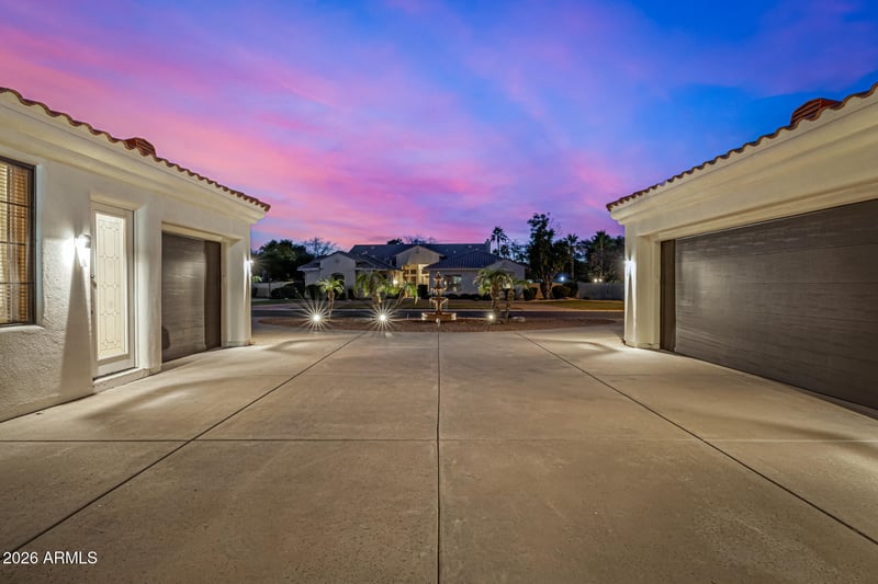 Listing details for 344 Bridle Ct, Gilbert, AZ 85295 : Wake up every day in your DREAM home in the heart of Gilbert Commons, minutes from parks, shopping, and the Downtown Gilbert Heritage District. Set on a quiet cul-de-sac, this oversized corner lot offers rare privacy and standout curb appeal that turns heads. A circular drive, large courtyard, mature landscaping, and tranquil fountain create a memorable arrival. Inside, enjoy soaring 12 ft tray ceilings, abundant natural light, and refined designer finishes. The ideal layout features formal living and dining plus a spacious family room with fireplace and French doors to the backyard & pool. A split 3 car garage where the 1 car bay has direct access to the private, 1-bedroom guest quarters that has its own kitchen and living area; perfect for multi gen living, private residence or rental. The gourmet kitchen boasts granite counters, mosaic tile backsplash, a walk-in pantry, a 2-tier island, a plethora of cabinetry, and high-end SS appliances w/cooktop gas & double wall ovens. The cozy breakfast nook creates the perfect spot for casual mornings! The double-door den offers flexibility as a private office, media room, or additional bedroom. You'll love the large main bedroom with a double-door entry & backyard access! Its spa-like ensuite includes two vanities, a walk-in closet, a separate shower, a jetted tub, & a decorative fireplace. Laundry room with a sink & ample cabinetry. Adding tremendous value and versatility is the private CASITA! Designed with a desirable great room layout, kitchenette, bedroom, bathroom, separate entrance, and direct access to a single-bay garage - ideal for guests, extended living, or multigenerational needs. Outdoors, the resort-style backyard invites relaxation and entertainment alike! Enjoy a covered patio, lush green lawn, built-in BBQ grill, and a fenced diving pool - your own private oasis perfect for year-round enjoyment. What's not to like? This beauty will not disappoint!