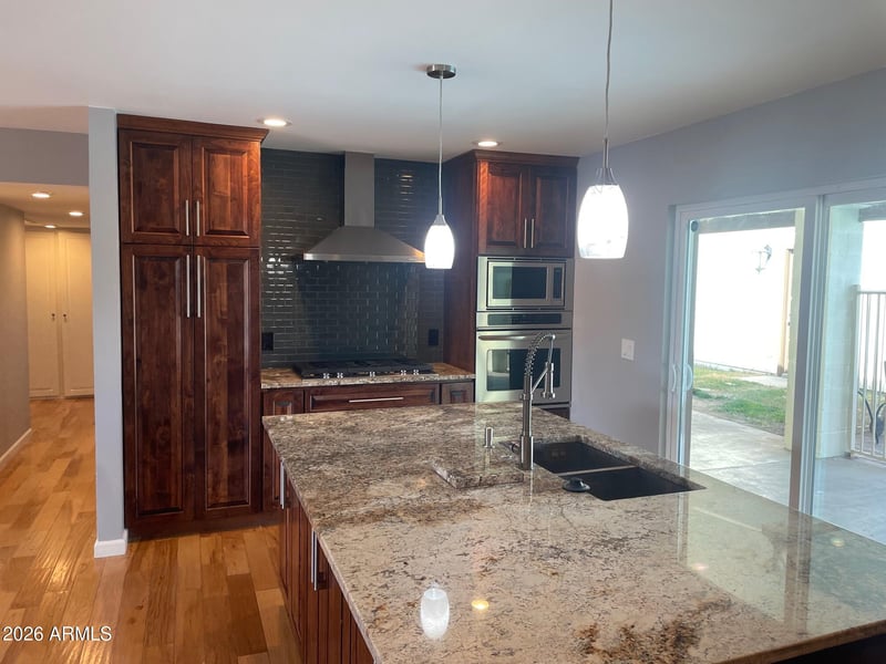 Listing details for 3444 Corrine Dr, Phoenix, AZ 85029 : Well cared for & upgraded home with an open floor plan, great natural lighting & many added features to make for an inviting new home. High end kitchen with custom build natural wood cabinets, 5 burner gas cooktop & custom hood, built in oven & microwave, expansive kitchen island with granite countertops opening to the large great room area with wood floors. Two large storage / pantry rooms and ample closet space throughout. Large corner lot with RV parking, detached 2 car garage with upgraded electrical for tool needs. Access to the covered rear patio, diving pool & above ground spa from the kitchen & master bedroom. New roof as of 2025 and many improvements to the home within the last few years make for a turn key move in ready home.