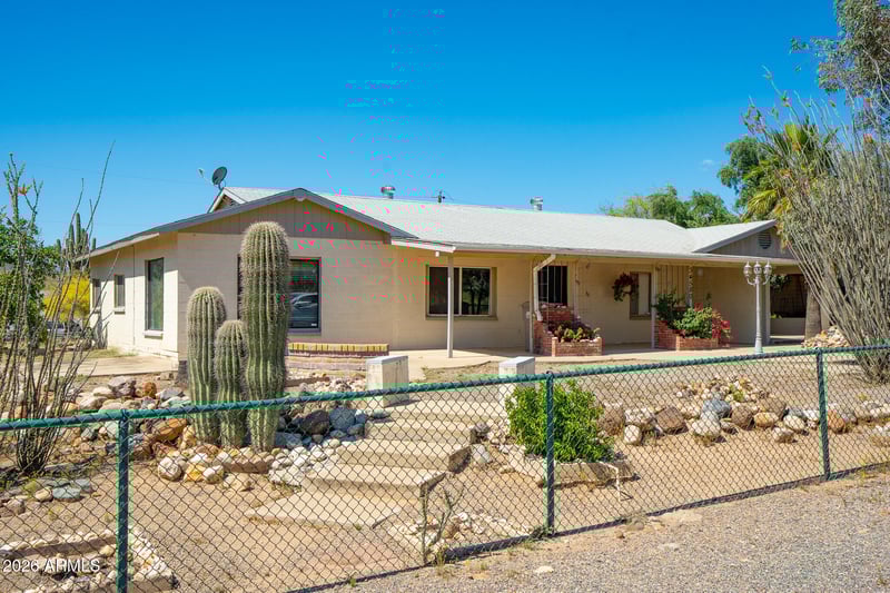 Listing details for 34580 Hill St, Black Canyon City, AZ 85324 : Charming older block home with a desirable 3-bedroom, 2-bath split floor plan, offering space, character, and endless potential. The home features a spacious great room plus an additional living room that could easily serve as a formal dining area, providing flexible living and entertaining options.