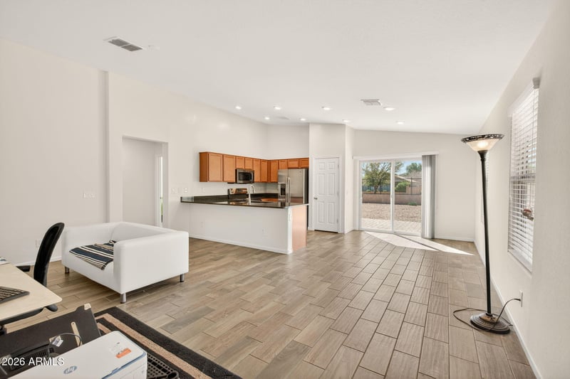 Listing details for 3497 Cowboy Cove Trl, San Tan Valley, AZ 85140 : Welcome to this 2017 Lennar-built home in San Tan Valley featuring 3 bedrooms and 2 bathrooms with a thoughtfully designed and highly functional layout. The open-concept living area flows seamlessly into the kitchen and dining space, creating an ideal setting for both everyday living and entertaining. The kitchen offers ample cabinet and counter space, making meal prep and gatherings easy. The primary suite includes a private bath and generous closet space, while two additional bedrooms provide flexibility for guests, a home office, or hobbies. Modern finishes and a low-maintenance yard complete this move-in ready home in a great location!