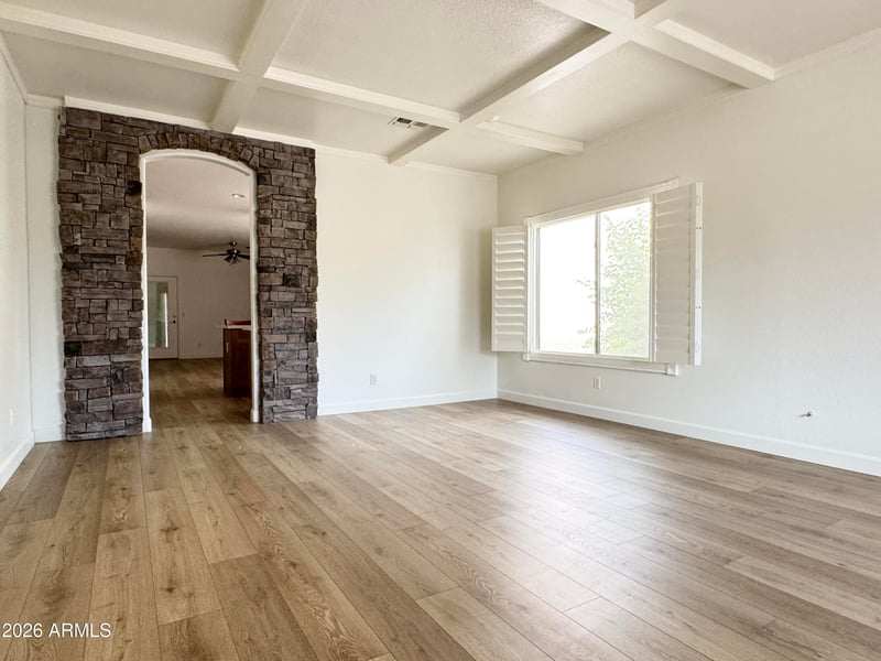 Listing details for 3500 Arroyo Ln, Gilbert, AZ 85297 : This 3-bedroom, 2-bath home featuring brand-new flooring, fresh paint, updated kitchen, and new bathroom vanities. Formal living and dining rooms, plus a family room with a brick fireplace. Includes a sunroom, shaded front porch, inside laundry with cabinets, and a peaceful backyard. Community offers several parks.