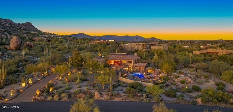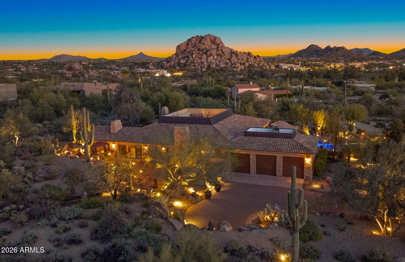 Outdoor living is equally exceptional, with multiple patios, a fenced pool fram by natural boulder outcroppings and an outdoor shower, plus a rooftop deck perfect for sunsets and stargazing. This is desert luxury at its finest -- warm, refined, and move-in ready for today's discerning home buyer.