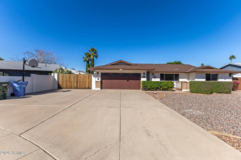 Listing details for 3504 De Poe Ln, Phoenix, AZ 85028 : Spacious and beautifully maintained 5 bedroom home located on a quiet cul-de-sac in the highly sought after Paradise Valley Unified School District. Centrally located with convenient access to major freeways, shopping, dining, and everyday amenities, making it easy to get anywhere in the Valley. This inviting property offers excellent curb appeal with a welcoming courtyard entry, manicured landscaping, RV gate, and a 2 car garage. Inside you'll find manufactured wood flooring throughout most of the home, ceiling fans, and a neutral color palette that creates a warm and comfortable atmosphere. The sun filled living room flows seamlessly into the dining area, while the large great room provides the perfect space for relaxing or entertaining. The renovated kitchen features tile floor granite countertops, white cabinetry, stainless steel appliances, mosaic tile backsplash, recessed lighting, a breakfast bar, and a cozy breakfast nook. The spacious primary retreat includes two mirrored closets and a beautifully renovated ensuite bathroom with tile flooring, designer tiled shower, and a relaxing garden tub. The hall bathroom has also been updated with tile flooring and a tiled shower. Major updates provide peace of mind, including a new roof installed in 2016, new AC in 2020, exterior paint completed in December, upgraded high end garage door with new motor and springs, and a recently replaced RV gate. The pool has also been well maintained with a new pump and filter installed last summer. Step outside to your private backyard retreat featuring a covered patio, sparkling pool, storage shed, and beautiful mountain views. A well cared for home with numerous upgrades, great outdoor living space, and a prime location. Hurry, don't miss this one!