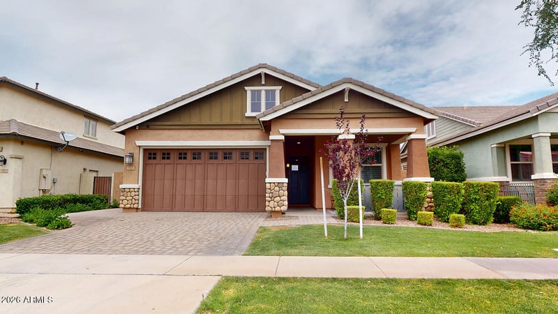 Listing details for 3526 Spring Wheat Ln, Gilbert, AZ 85296 : Beautifully maintained home in the heart of Gilbert offering comfort, style, and convenience, located in the highly sought after Morrison Ranch community known for its charm and iconic white picket fences. This inviting residence features an open concept layout filled with natural light, a spacious kitchen with granite countertops, maple extended cabinetry, stainless steel appliances with vented hood and gas cooktop, a large walk in pantry, and seamless flow into the living and dining areas perfect for everyday living and entertaining. Offering 3 bedrooms, 3 full baths, and a versatile flex room, this home is loaded with upgrades including plantation shutters, ceiling fans throughout, surround sound, and dual digital thermostats. The primary suite is a true retreat with a walk in shower featuring three shower heads, raised double sink vanity, and ample linen storage. Step outside to a beautifully designed backyard with extended travertine patio, pergola with pull down sun shade, artificial turf, gas BBQ stub, and a hot tub included as is. The garage is a standout with upgraded lighting, epoxy style painted floors, and its own A C unit, ideal for projects or hobbies. Tankless water heater, water softener, and stainless refrigerator are included. Located near top rated schools, parks, shopping, dining, and major freeways, this is a must see opportunity offering comfort, functionality, and lifestyle all in one.