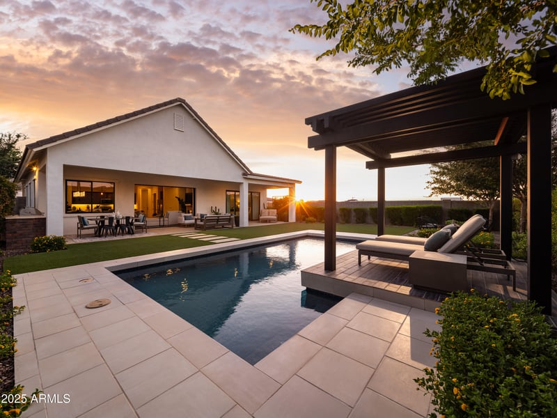 Listing details for 35353 Cryolite St, San Tan Valley, AZ 85144 : Our Catalan model home is now for sale & fully furnished! The highly coveted farmhouse elevation will be exactly what you have wanted. The open-concept great room is the perfect atmosphere for entertaining, with a tiled fireplace and connectivity to the dining area. Expansive views of the complete outdoor space are accessible through the multi-panel pocket door. The backyard retreat is perfect for activities, complete with a resort style pool, pergola with a cozy sitting area and built in BBQ. This home is complete with endless luxury options and custom features totaling over $200,000. Don't miss your chance to own this gorgeous model home!