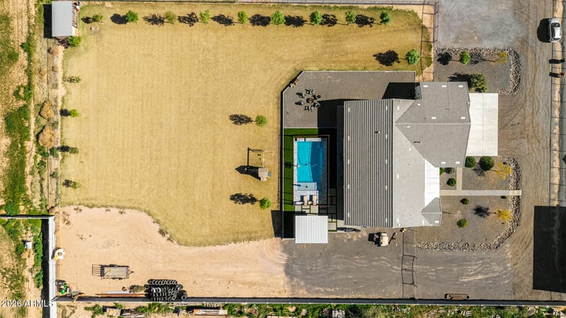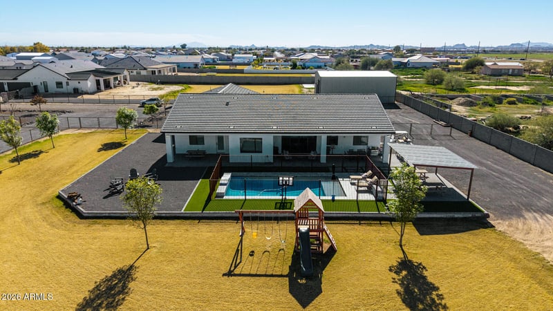 Listing details for 35478 Fieldview Dr, San Tan Valley, AZ 85140 : Wow! This outstanding 4-bedroom masterpiece nestled on a large1.25-acre lot has everything you've been looking for! Starting with a 4-car garage, two wide RV gates, and a cozy front porch sets the tone for what awaits inside. Captivating open floor plan filled with charm and comfort, highlighted by pre-wired surround sound and a wall-mounted fireplace, adding a touch of warmth. You'll love the wood-look tile flooring, bountiful natural light, shutters, and top-quality finishes throughout. Beautiful kitchen is a cook's delight, fully equipped with stainless steel appliances, a pantry, abundant cabinets, subway tile backsplash, a prep island with a breakfast bar, and sleek quartz counters. Beautiful home with farmhouse features. Plush carpet, direct outdoor access, and a trendy barn door to the elegant ensuite comprised of two vanities, a garden tub, and a walk-in closet complete the picture. Stunning backyard is an entertainer's dream, showcasing a covered patio, gazebo, play area, chicken coop, and a refreshing pool, perfect for year-round enjoyment. Live your best life in this exceptional gem!