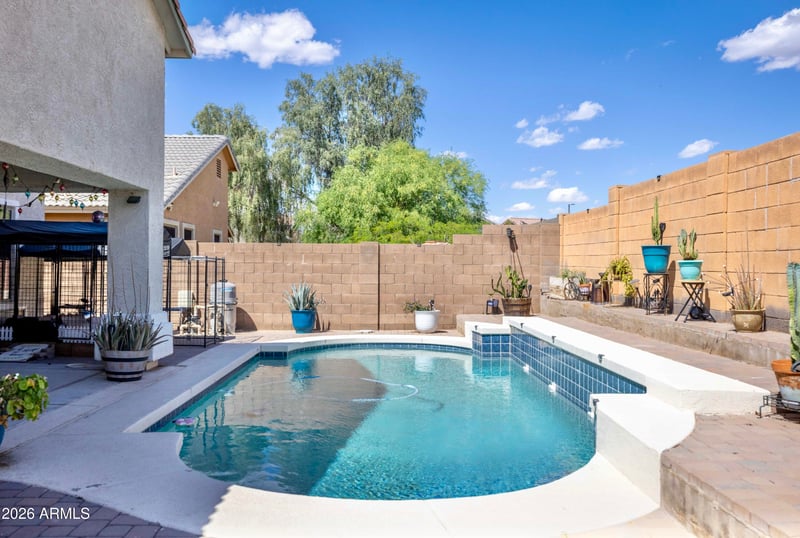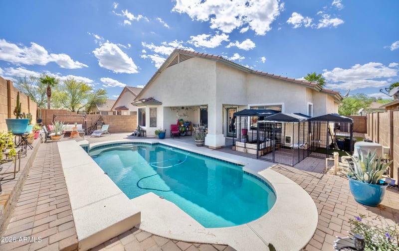 Step Outside To A Backyard Designed For True Arizona Living, Featuring A Covered Patio, Custom Paver Accents, And A Large 365 SqFt Pool--Perfect For Entertaining, Relaxing, And Enjoying Those Beautiful Desert Evenings. The Pool Has Been Recently Refinished With A PebbleTec Coating And Features Updated Equipment With A Pentair System For Added Efficiency And Convenience. The Spacious Backyard Offers The Ideal Blend Of Function And Style With Low-Maintenance Landscaping And Room To Fully Enjoy The Outdoor Lifestyle.