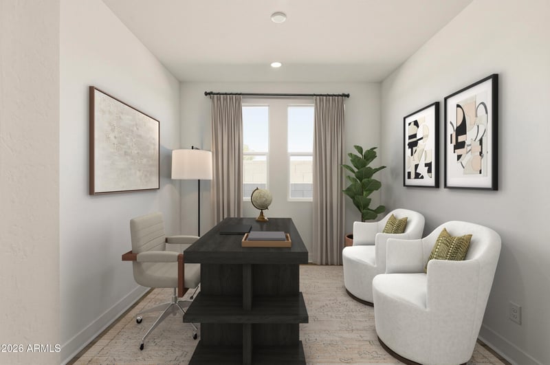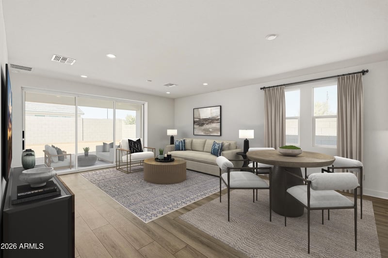 Listing details for 35826 Flint Dr, San Tan Valley, AZ 85144 : You will marvel at this timeless Chapin Ranch design located on a corner lot. The sweet exterior and charming finishes throughout will make you want sign on the dotted line. The open-concept floorplan and abundant natural light greet you the moment you walk in. Luxury vinyl plank flooring enhances the main living areas, while upgraded carpet adds comfort to the bedrooms. The kitchen showcases gorgeous quartz countertops and under-cabinet lighting for an elevated aesthetic, plus the upgraded KitchenAid refrigerator is a welcome bonus. A highly desired multi-panel pocket sliding glass door at the great room gives a seamless transition to the outdoor living space. The home is FULLY move in ready with a front-load washer/dryer set and window coverings. Comes check out your options!