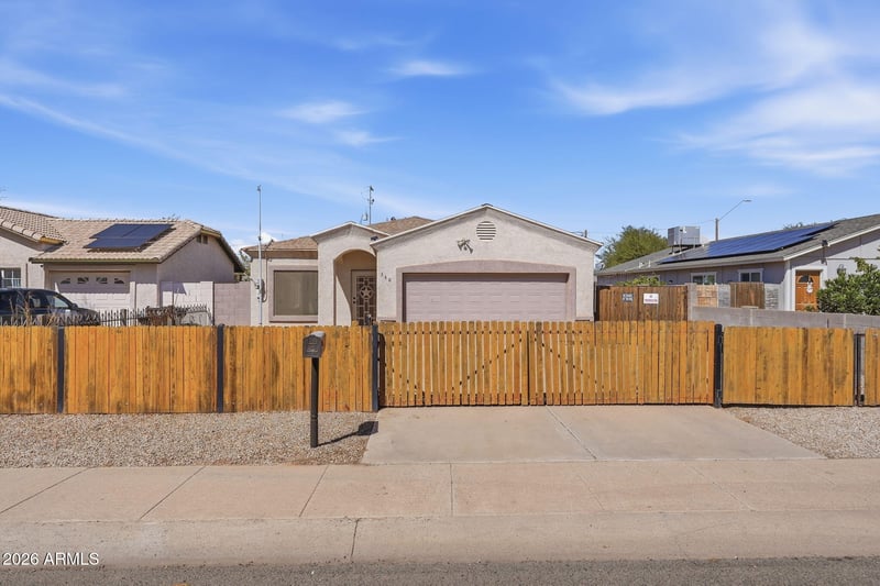 Listing details for 360 Bealey Ave, Coolidge, AZ 85128 : 3 bedroom, 2 bathroom home with automatic gated entry and RV gate access with NO HOA. Natural light fills the spacious living and dining areas upon entry. The kitchen includes stainless steel appliances and a walk-in pantry for added storage. The generously sized primary suite features vaulted ceilings, dual vanities, a walk-in shower, and a huge walk-in closet with built-in shelving. Additional features include an inside laundry room with washer and dryer included, a 2-car garage, and generously sized secondary bedrooms. Enjoy the extended covered patio and large paver back porch--perfect for entertaining--plus a spacious backyard ready for your personal vision.