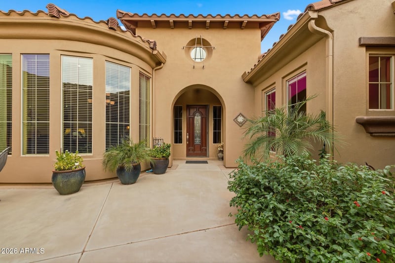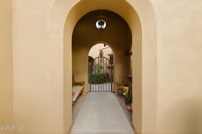 Listing details for 3604 San Pedro Pl, Chandler, AZ 85249 : Welcome to this beautifully appointed single-level home in the gated Alicante at Valencia community in Chandler. Ideally positioned with serene water views and only one neighboring home, this residence offers rare privacy and a peaceful setting. Inside, you'll find soaring ceilings and an open, light-filled layout that creates an immediate sense of space and comfort. Large windows frame the water, bringing the outdoors in and enhancing the home's calm, elegant feel. The thoughtfully designed floor plan is ideal for both everyday living and entertaining, with generous living areas and seamless flow throughout. Located in a quiet, gated enclave, this home combines low-maintenance living with a prime Chandler location close to dining, shopping, and freeway access.