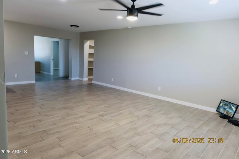 Listing details for 3638 State Ave, Phoenix, AZ 85051 : Need room for your off road toys, work trucks, or just extra room to run around! Look no more, this beautiful remodeled 3 bedroom, 2 bath home has a giant backyard! Tile planks throughout the entire home. Open floor plan greets you as you walk in, with nice open kitchen. White Cabinets and stainless steel appliances, washer and dryer hook up inside. Home does have 3 additional rooms added with access doors through the outside. Double RV gate and space for 4 vehicles in-front of home. Nice big Storage in backyard. Covered patio area for all of your family gatherings.