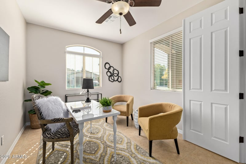 Listing details for 364 Sweet Shrub Ave, Queen Creek, AZ 85140 : If privacy, comfort, and a ''move-in ready'' feel are at the top of your list, this one delivers. This meticulously maintained (by original owners) 3-bedroom, 2.5-bath home with a dedicated office checks the boxes buyers want most—privacy, upgrades, and an open bright layout. Curb appeal shines with fresh exterior paint, a travertine tile walkway, and a welcoming front patio. Inside: custom fresh interior paint, ceramic tile throughout, solar tube lighting, surround sound, and upgraded bronze fixtures/hardware. The gourmet kitchen is built to impress with staggered wood cabinetry, quartz countertops, subway tile backsplash, a large island with farm sink + breakfast bar seating, wall oven and microwave, induction cooktop (gas stub in place), and a huge pantry. Owner's suite features a spa- spa-style shower, stone vanity counters, and a spacious walk-in closet. Two guest suites provide flexibility one is oversized (nearly double a typical bedroom), ideal for multi-use living. Backyard is private and low maintenance with an extended travertine paver covered patio, synthetic turf, mature landscaping, and rain gutters. Notable upgrades: new A/C unit, whole-house allergy purification system, Nuvo soft water system, an extended garage and all new irrigation lines built to last. Pride of ownership and loved from day one.All of this in a vibrant Queen Creek community loaded with amenities 21 parks, 2 heated pools, splash pad, sports courts, frisbee golf, bocce ball, and more. Close to The Olive Mill, Schnepf Farms, Pioneer Park, and endless dining and shopping.