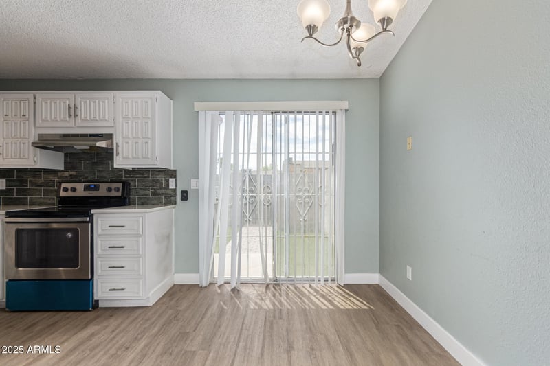 Listing details for 3646 67th Ave #96, Phoenix, AZ 85033 : Move-in ready! This charming townhouse features luxury vinyl flooring throughout, a modern kitchen with quartz countertops and a sleek tiled backsplash, plus a refreshed bathroom featuring a tiled shower and matching quartz vanity. The private yard is complete with fluffy green turf and a concrete paver walkway. Situated just minutes from shopping, dining, schools, and major freeways, this property provides easy access to everything the West Valley has to offer.